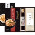 北海道産ゆめぴりか(真空パック)450g×1、ほぐしめし(ずわい蟹・帆立 2合用×各1)、しじ美醤油200ml×1