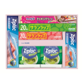 サランラップ(30cm×20m)、(22cm×20m)、ジップロックフリーザーバッグM18枚、L12枚、クックパークッキングシート(Lサイズ30cm×5m)×各1、スクリューロック300ml用×2[日本製、フリーザーバッグ=タイ製、スクリューロック=韓国製]