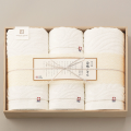 歴史と伝統が織りなす、愛媛県「今治」のタオル。安全性の高い製法で綿を純化し、綿本来の吸水性を最大級に引き出す匠の技「今治本晒」。職人のこだわりがこの白さにたどり着きました。そして、美しい瀬戸内海の波や来島海峡の渦を、今治が誇るジャカードで表現しております。職人の技とこだわりが詰まった「今治謹製 白織タオル」の心地よい吸水性をぜひ感じてみてください。